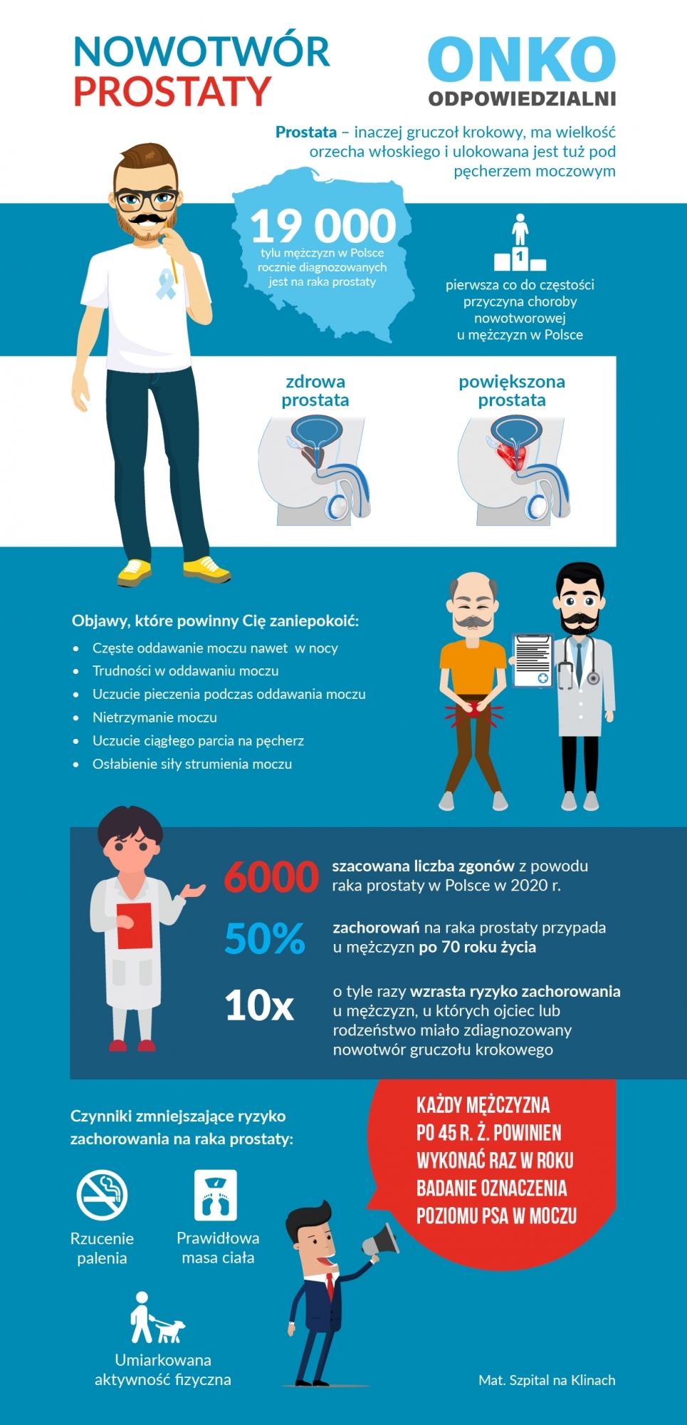 15 września obchodzony jest Europejski Dzień Raka Prostaty. Z tego też względu we wrześniu ruszyła trzecia odsłona akcji ONKOODPOWIEDZIALNI, która poświęcona jest ona rakowi prostaty. Choroba ta zajmuje niechlubne pierwsze miejsce wśród męskich nowotworów, stanowiąc ponad 19,6% zachorowań onkologicznych. Niestety w Polsce rak prostaty rocznie odpowiada za ok. 19 tys. zachorowań i ok. 6 tys. zgonów wśród mężczyzn.